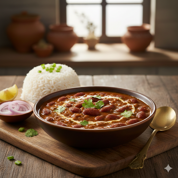 Rajma (kidney bean) is heavy to digest, slightly bitter in taste, and dry in nature. It aggravates Vata dosa, promotes bodily strength by increasing bulk, and has an abhiṣyandi effect, meaning it tends to cause obstruction in bodily channels. After digestion it exhibits a sweet post-digestive effect and aggravates both Kapha and Pitta dosas.